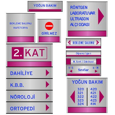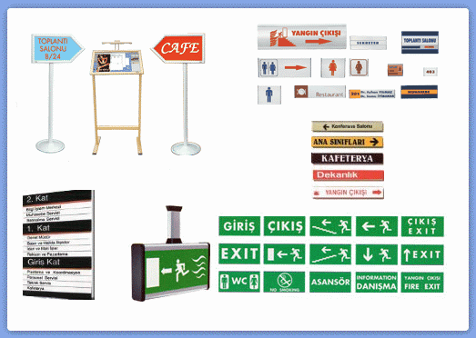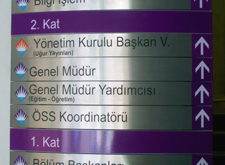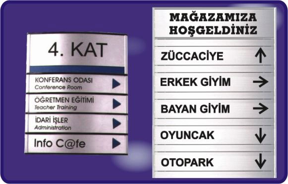 İş Hanı, Hastane, Okul, Resmi Kurum, Belediye, İş Yeri, Dershane, Sağlık Ocağı, Dernek, Vakıf gibi birçok alanda ve çok amaçlı kullanılan yerlerde kapı kenarlarına, ana giriş ve katlara uyguladığımız orta ve küçük boyutlarda uyguladığımız tabela çeşidimizdir.